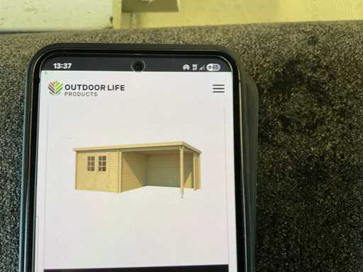 Spruce Log Cabin "Flora" - 570x275x230 cm. No manual pipe, no mounting material. This is a return package, see photos for details.