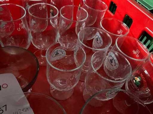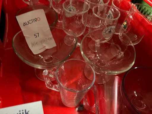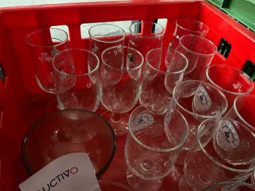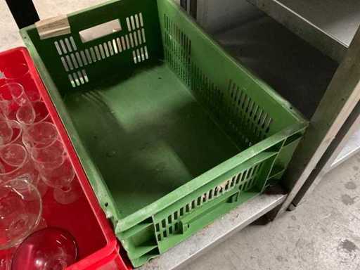 3 different stacking crates, 40x60 cm, different heights, 1 crate contains glassware.