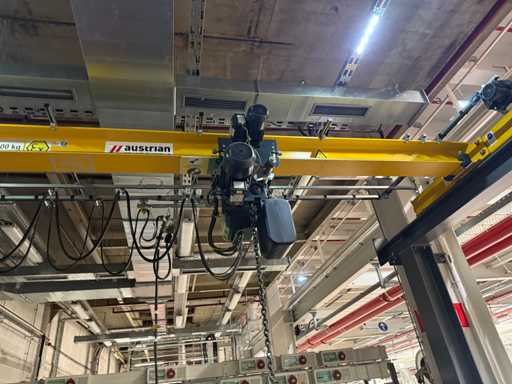 Compact overhead crane setup ideal for light industrial lifting, assembly lines, or maintenance workshops. The cranes are fitted with high-quality STAHL hoists, known for precision lifting, low noise levels, and long service life.