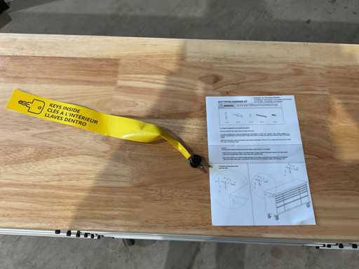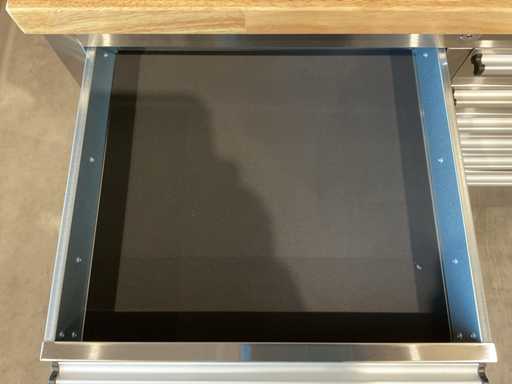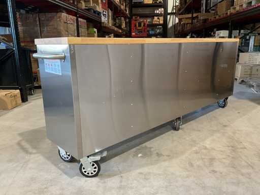 Equipped with all 430 anti-fingerprint stainless steel; 24 drawers; 35 mm wooden worktop; 2 handles; 6 x 6 inch wheels of which 4 wheels with brakes; lockable by means of a key; Unused in box (transport dimensions 255x55x100 cm)