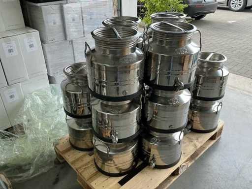 Lot of 20 stainless steel food storage containers with drain tap