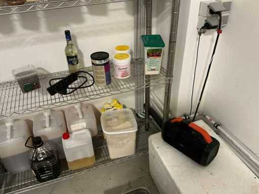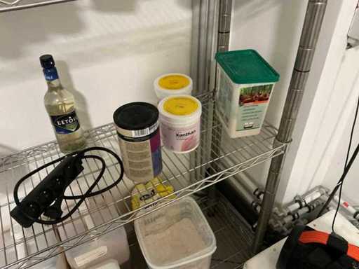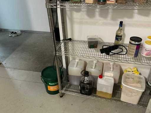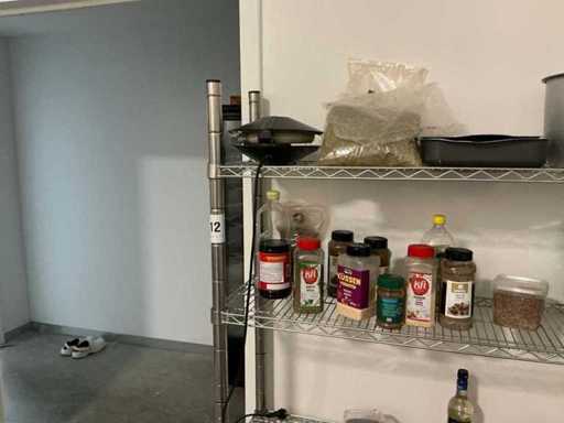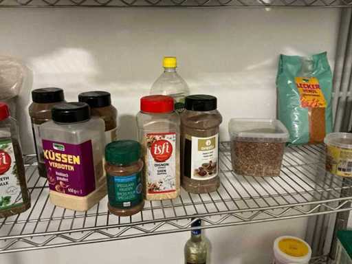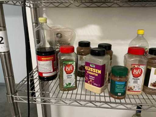 Consisting of 2x stand and 4x storage shelf. With contents including mainly used kitchen spices and liquids. By disassembling and moving the environment of copper.