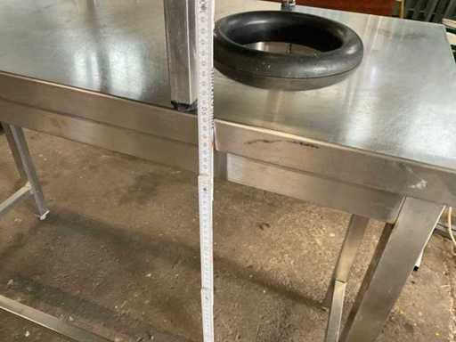 Stainless steel work table with built-in ring for food waste. Stainless steel table base 500x500