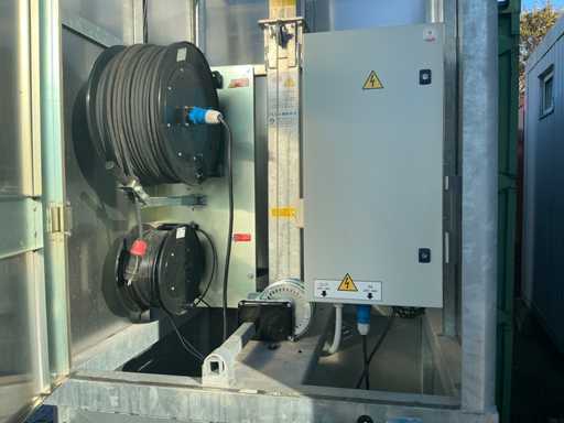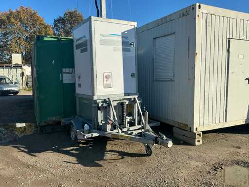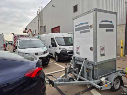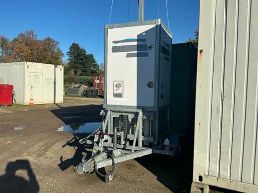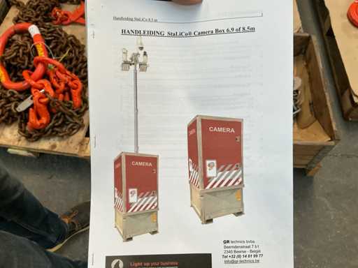 For surveillance and/or lighting of the construction site. 2x unit with camera and light pole movable with 1x 750kg trailer. Equipped with hydraulic lifting system.