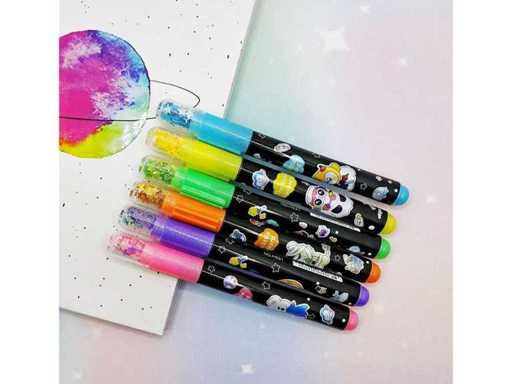 The caps of these special pens contain moving glitter particles, and the tips are printed with heart and star motifs. These colorful markers in 6 different colors are guaranteed to attract attention in your assortment.