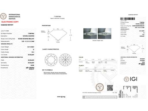 Diamond: Natural; Quantity: 1 piece; Cut: Starcut; Weight (carat): 0.51 carat; Color: G; Purity: VS2; Certificate: IGI; Certificate number: 710587866; Extra information: This diamond is a real Starcut diamond; Brand: Starcut; Condition: New; Packing: Gem Box; Explanation: The quality has been taken from the report belonging to the item. The valuation is an assessment of a certified diamond dealer, based on consumer prices; Consumer price: € 5,980