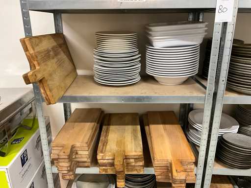 Contents consisting of plates, cutlery, snack boards, napkins and various