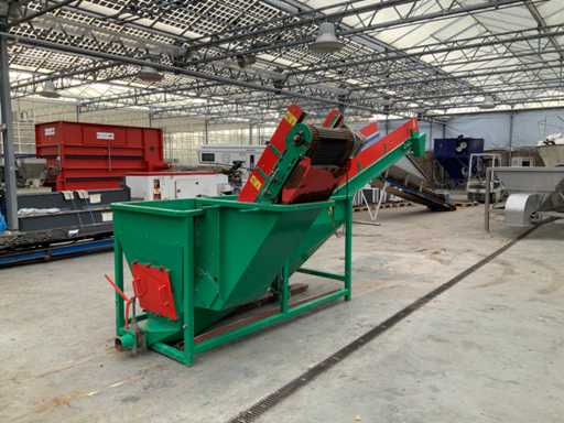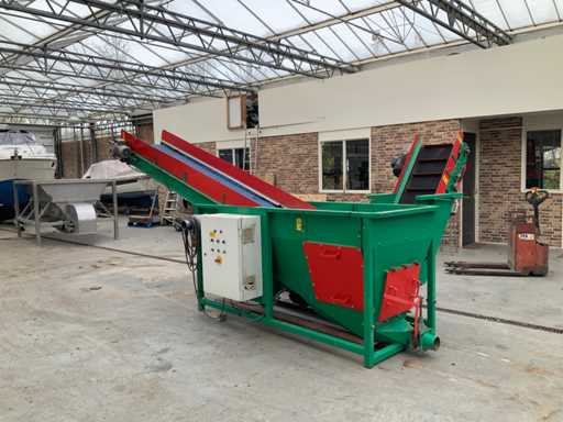 The 500 mm wide clod belt can be mounted on the left or right, gross capacity max 25 Ton per hour, with weir pump and gate valve for dirty water, can be used for various industries. With accompanying manual.