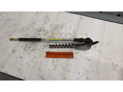 STIHL FH 135 Hedge Trimmer Head / Top (Shaft Mounted); Professional hedge trimmer attachment (upper part) for STIHL pole systems; model FH 135. Equipped with aluminum carrying handle; adjustable hedge trimmer head with double-sided blades and control handle; Used condition with normal wear and slight soiling; CE marking and type plate available; Suitable for professional hedge and green maintenance;