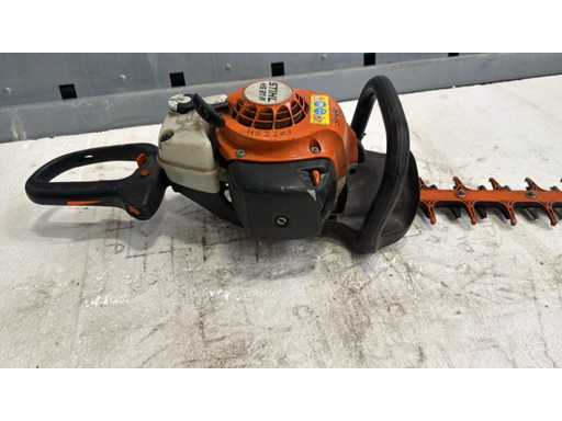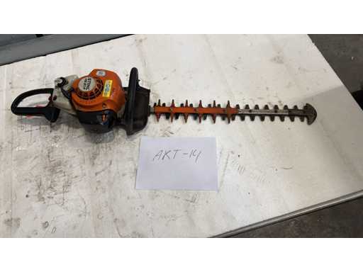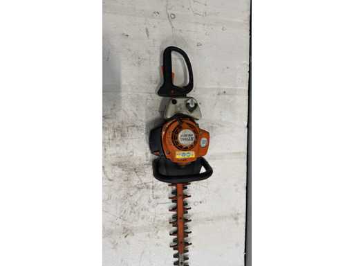 STIHL HS 81 R Hedge Trimmer (Petrol); Petrol-powered professional hedge trimmer with double-sided cutting blade; Robust design with hand start; blade guard and CE marking; Used condition with obvious wear and soiling; functional workshop/site execution; Suitable for intensive green maintenance;