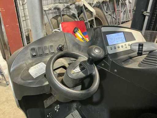Suitable for material handling and warehouse applications. Pedals and controls can be adjusted electronically. With charger. Scan the QR code for the history of the reach truck (see photos).