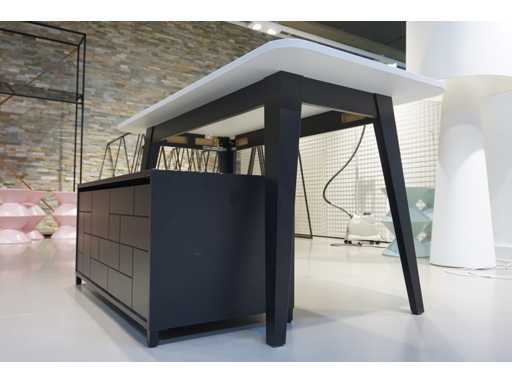 Table: 160x80x85 cm and drawer unit: 110x50x50 cm.