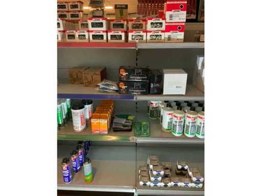 Store rack with various contents