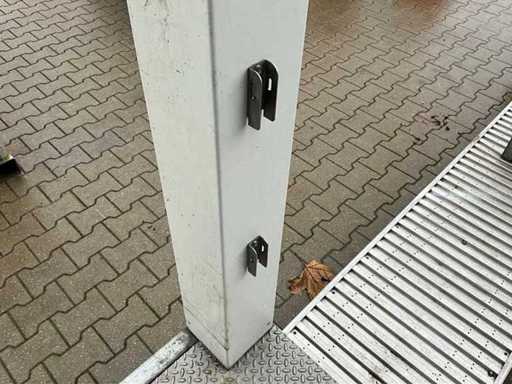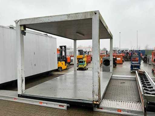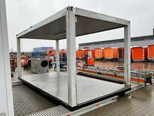 steel frame; without side walls; steel checker plate floor; power connection; lighting; ; twistlocks; the buyer must take care of his own transport and open truck with loading crane;