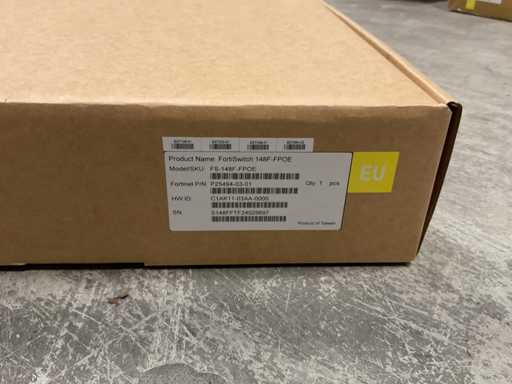 Fortinet FS-148F-FPOE Fortinet FS-148F-FPOE. Switch-Ebene: L2. Basic Switching RJ-45 Ethernet Ports Type: Gigabit Ethernet (10/100/1000), Number of basic switching RJ-45 Ethernet Ports: 48. MAC address table: 32000 entries, Routing/switching desk: 176 Gbit/s. Network standard: IEEE 802.3af,IEEE 802.3at. Power over Ethernet (PoE). Rack-mountable, form factor: 1U