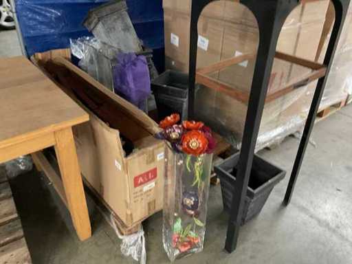Consisting of 1 table approx. 220s90x76 cm, shop display, mobile, approx. 60x80x100 cm, various decorative items including Tables, vases with artificial flowers, etc.