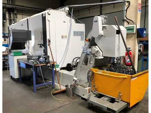 Equipment: Drum chip conveyor, workpiece catcher with conveyor, 70 bar HP coolant with cooling, X/Z rulers, LNS Quick Load Servo III bar feeder interface, AICC II software, Renishaw tool probe, automatic door opener