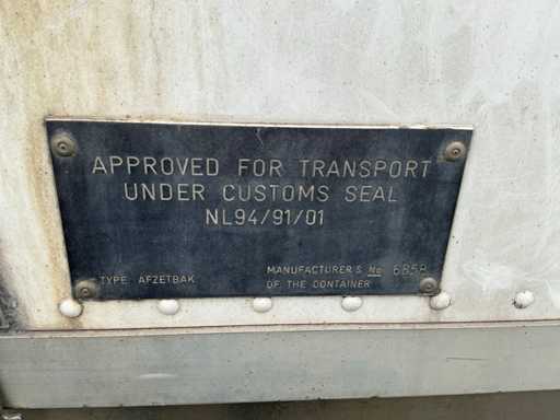 Equipped with twistlocks, support legs, size approximately 7.45x2.55 meters