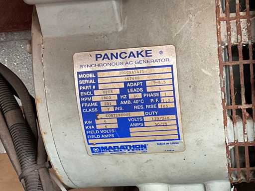 Operating hours: unknown. Equipped with: (4x) Floodlights, Pancake generator, type: 201CSA5411, 3 cylinder diesel engine. Please note! No license plate.