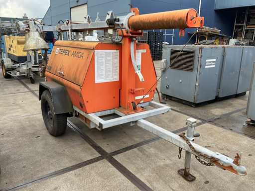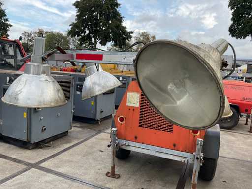 Operating hours unknown. Equipped with: (4x) Floodlights, Pancake generator, type: 201CSA5411, 3 cylinder diesel engine. Please note! No license plate, generator defective.
