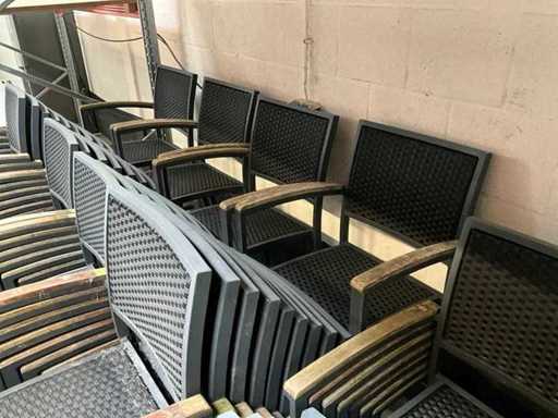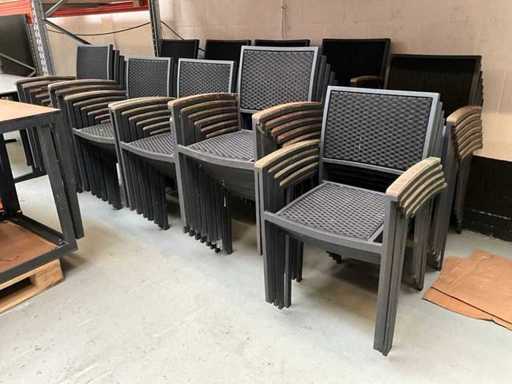 Consisting of: 4x bar stool, 43x patio chair with armrest, 2x bar table H100xW80cm, 12x patio table H74xW80cm and 2x patio table H74xL140xW80cm