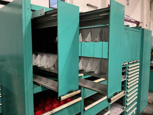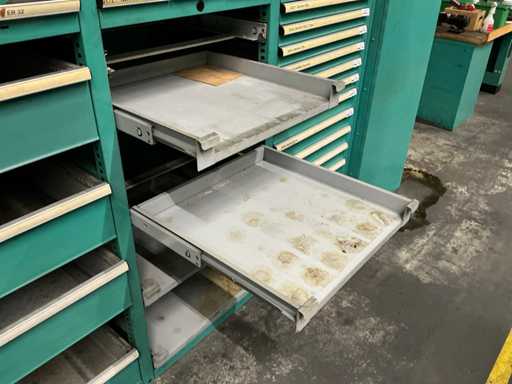 With 36 drawers, 316 places for tool holders, without contents, collection by arrangement with Daetwyler AG, weight estimated approx. 400 kg, see photos for more details