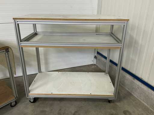 1x with 2 shelves 165x80x95cm LxWxH and 1x with 3 shelves 120x61x115cm LxWxH
