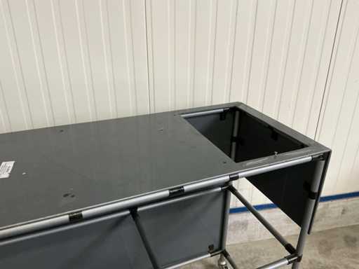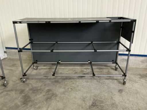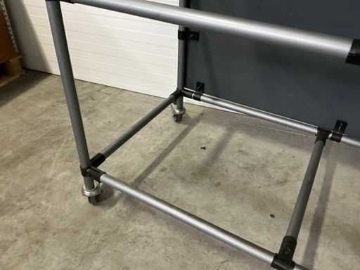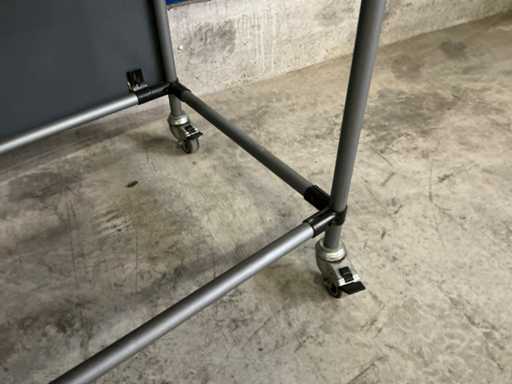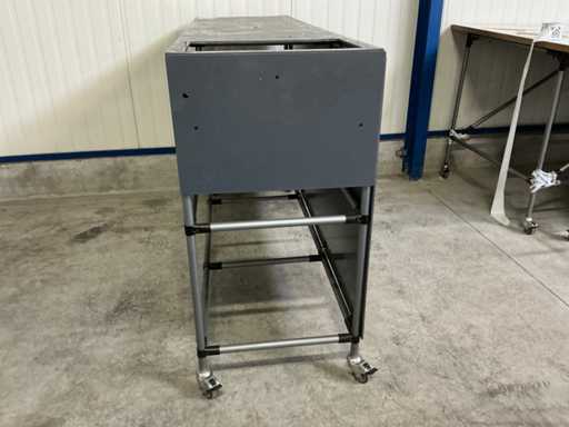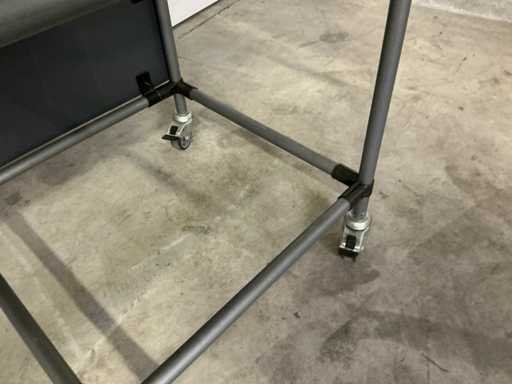 Shelf height 20 and 70cm possible; now without a shelf; equipped with 4 swivel wheels with brakes