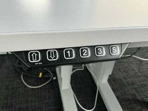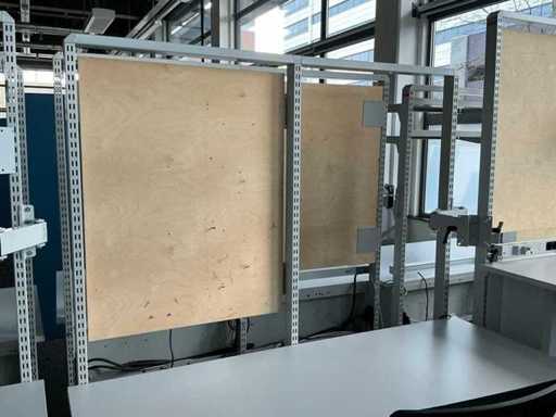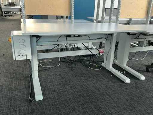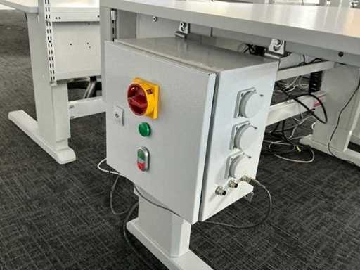 Electrically adjustable desk (74-105cm) with power supply and back wall (107.5x153cm). Each desk is equipped with a Fattore ergonomic office chair.