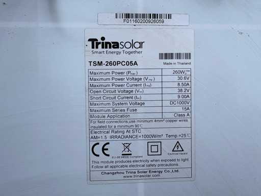 Power: 260 Wp per panel total power: 26,520 Wp The panels have already been disassembled and bundled on 3 pallets of 180x115 cm Condition: Used