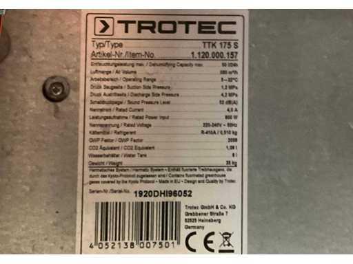 Trotec TTK 175 S Condensation dryer / construction dryer