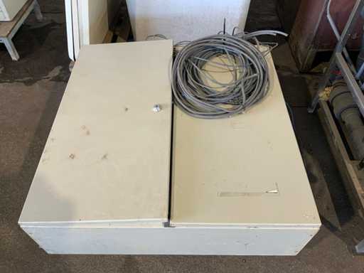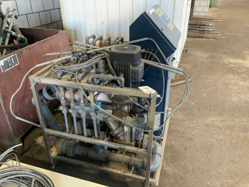 equipped with vanVliet Modimix 500 computer, 1 Grundfos CR 30 water pump, 1 polyester float tank, 4 magnetic dosing valves, 1 box with piping, 1 control box and 4 polyester tanks, dimensions: L94 x W94 x H100 cm with lid