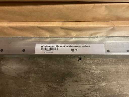 All in 1 rack section consisting of 5x 60cm with paper knife without supports and 8x cutting machine 60cm without table supports, various loose foot and wall supports and iron frame.