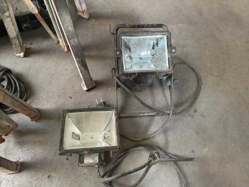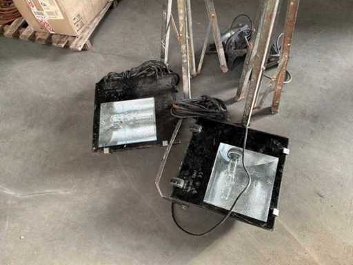 Including 1x Vetec LED construction light on stand, 1x Vetec MH150-2 halogen lamp on stand, 2x spotlight (dimensions approximately 43 x 43 x 14cm), 1x Spider 511-80 500W, 1x Profile CE-82-Y 400W