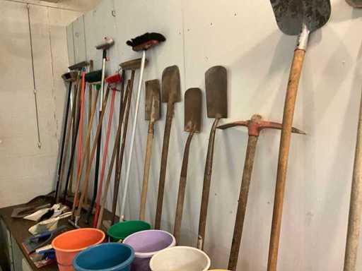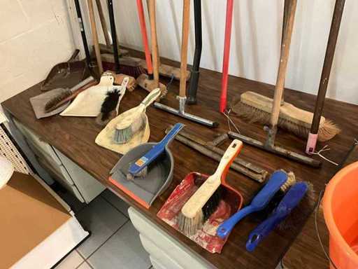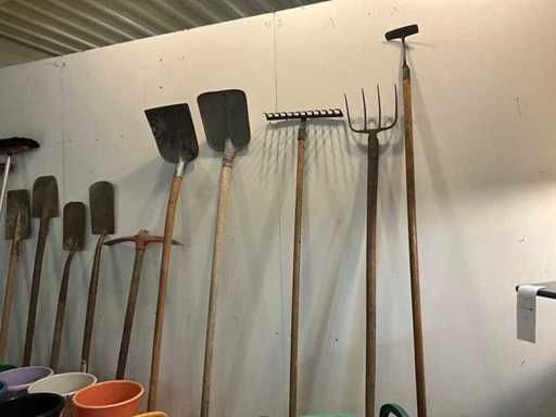 Including various shovels, pitchforks, scrapers, various squeegees, brushes, buckets and hand brushes