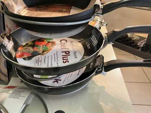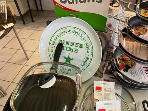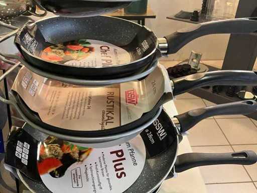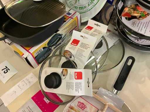 Including gourmets, various lids ibili, pancake pan GSW, 5 different pans SSW, plateau