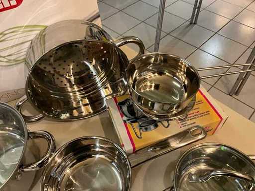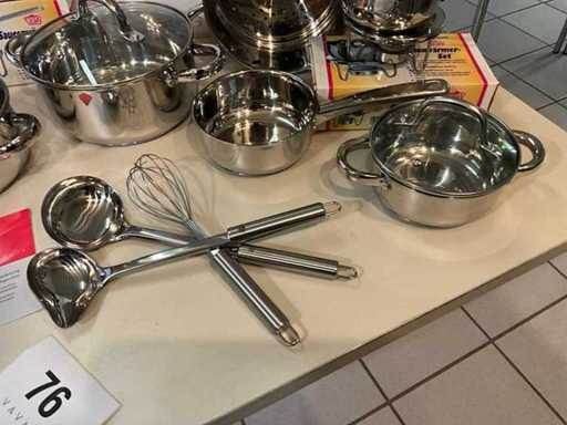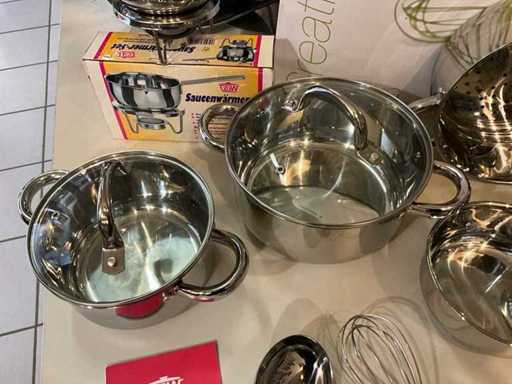 Including various cooking pots, sauce warmers and various kitchen utensils