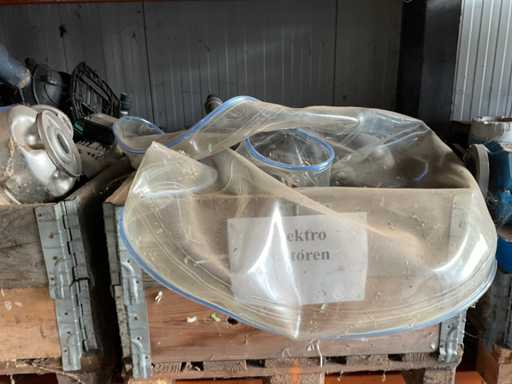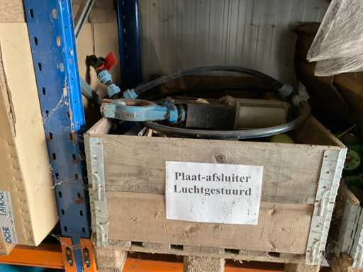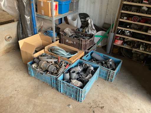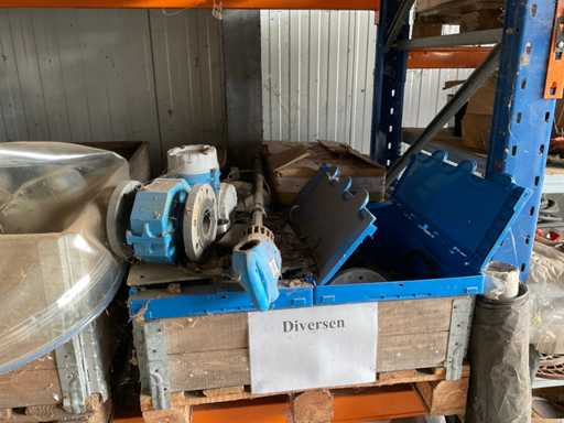 Consisting of: butterfly valves, submersible pumps, plate valve, pumps, bramd-weather hoses, spare parts, etc. Includes: (4x) parts rack Height: 440cm, width: 270cm, Depth: 100cm.
