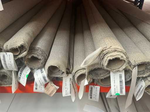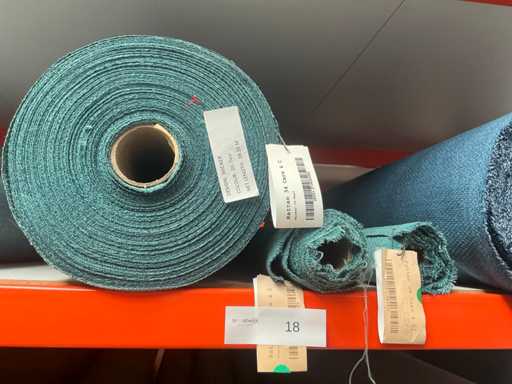 Consisting of content section, various rolls of textile/fabric. Various designs, types of fabric. Various lengths