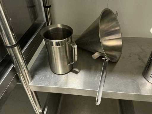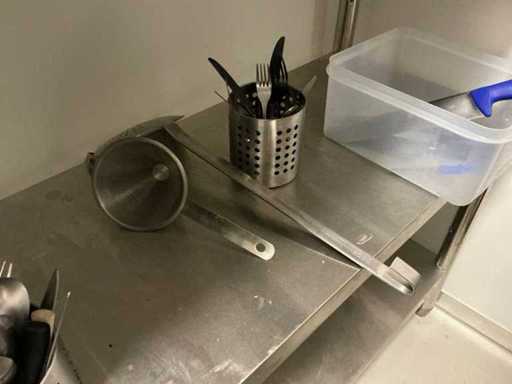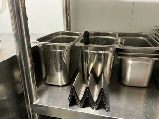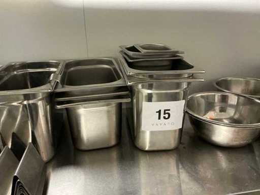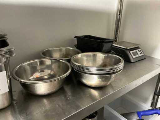 Consisting of 11x various gastronorm containers, 11x stainless steel bowls, scale Escali, stainless steel colander, measuring cups and miscellaneous.
