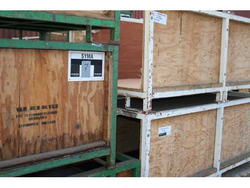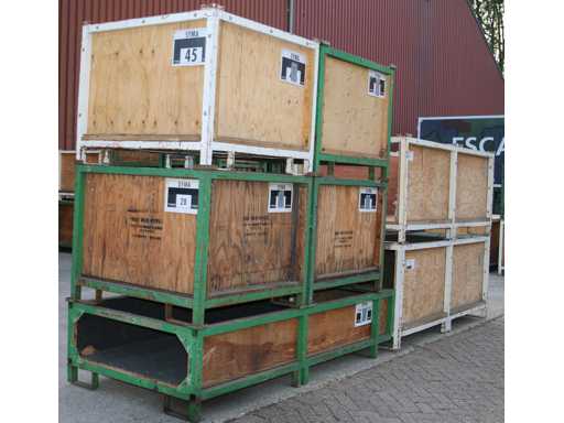 including 4x dimensions 1140x1140x910 mm; 2x dimensions 2350x1140x910 mm; 1x size 2600x1140x550 mm; profile steel frame; wood plated; Stackable;