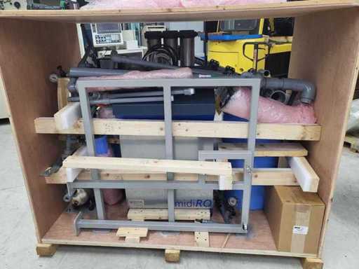 Professional midiRO 10-750-EP reverse osmosis (RO) installation, suitable for the production of high-quality purified water. This compact and robust installation is designed for industrial use and applications where constant water quality is required, such as in metalworking, surface treatment, food industry or laboratory environments.