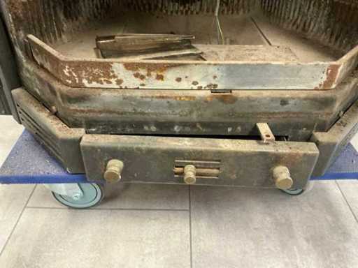 Equipped with 2 patio doors, 1 with broken glass. Equipped with transport cart. Plug not present.