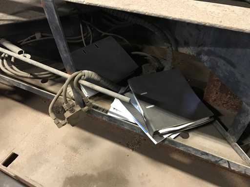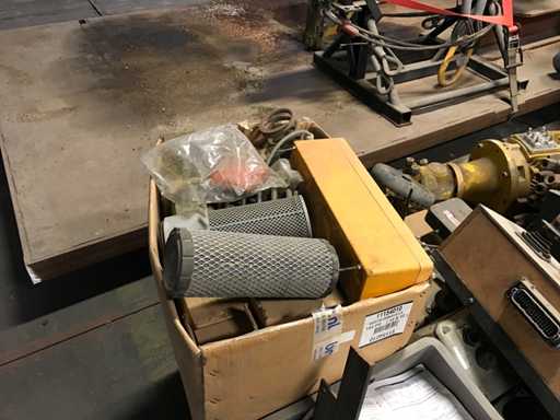 equipped with 4 hydraulic outriggers; boom length approx. 3600mm; including caterpillar chassis; Hetronic radio remote control; SCA tiller; De Gier Hijsevenaar; Type EG340; incl container chassis; various accessories