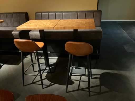 Consisting of 1 piece wall panels with sky upholstered color gray, size 180x75x118cm, 2 tables size 60x70x111cm and 2 pieces of sitting stool