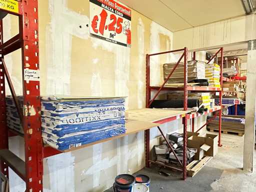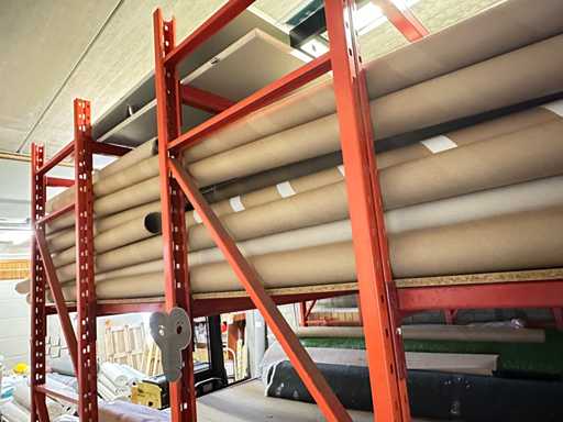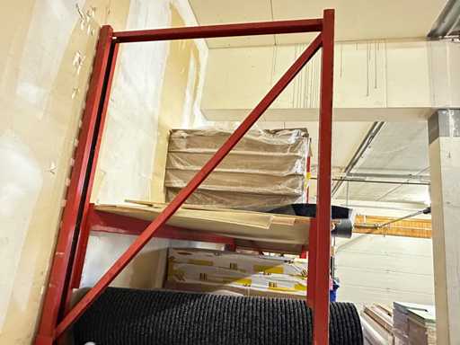 Excluding content. The rack consists of 12 uprights of 90x300 cm (WxH), 34 beams of 290 cm and 270 cm. Various shelves.