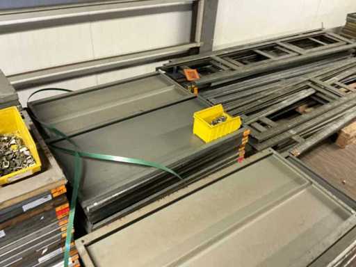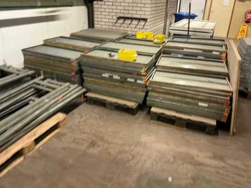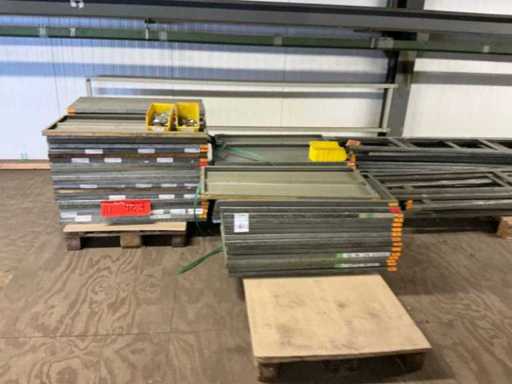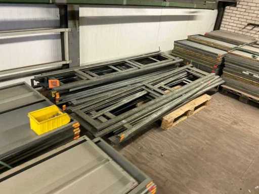 Already disassembled, consisting of 25 uprights (50x250cm) and batch of shelves, total on and including 13 pallets, on the first floor, there is no elevator