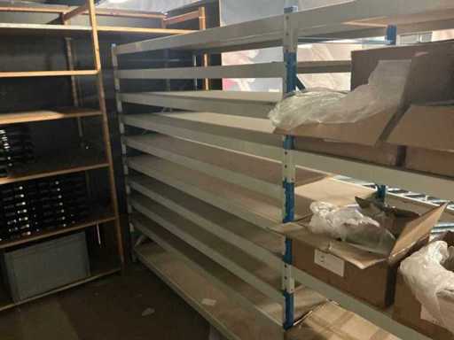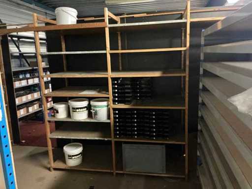 Consisting of various wooden racks and shelves including 57 beams 200 cm