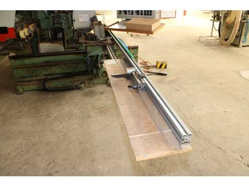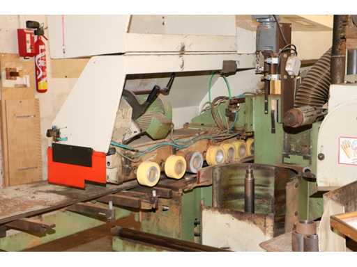 , cut-off saw and glazing saw. Width 30–220 mm, height 30–100 mm, length 330–2600 mm. Outputs 7.5–12 kW, speeds 2800–7000 rpm. Spindles Ø40 mm, transverse clamping 240 mm, longitudinal 160–240 mm. Estimated weight 2500 kg.