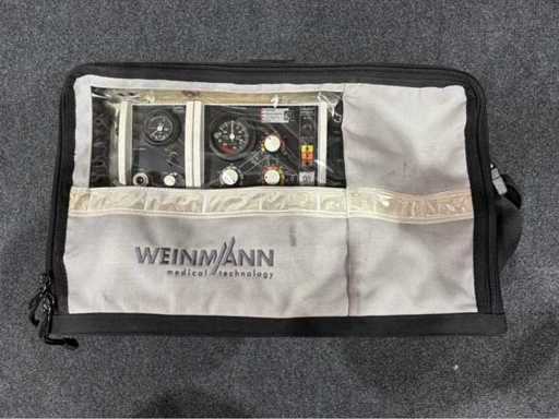 Complete portable ventilation system from WEINMANN for emergency use. Consists of MEDUMAT Standard and Modul Oxygen, integrated in a robust transport bag with viewing window. Pressure range 2.7–6 bar. CE certified, IPX4.